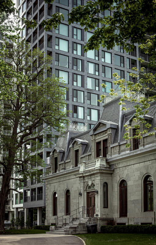 « La démarche architecturale s’est amorcée avec regard sensible au contexte immédiat du site, notamment des maisons Masson, Judah et Shaughnessy, de rares témoins d’une époque où certaines familles bourgeoises habitaient de grands terrains le long de ce qu’on connaît aujourd’hui comme boulevard René-Lévesque. »